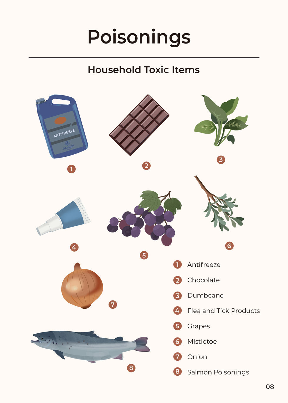 Work in Progress; This booklet, primarily targeting the general pet-owning public, and pet care professionals. By incorporating vet-approved content and collaborating with veterinary professionals, the booklet covers the pet first aid kit, emergency signs, first aid procedures, and essential information on poisons and toxins.